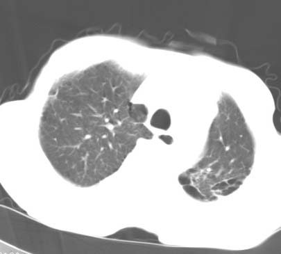 肺间质纤维化、胸膜肥厚。