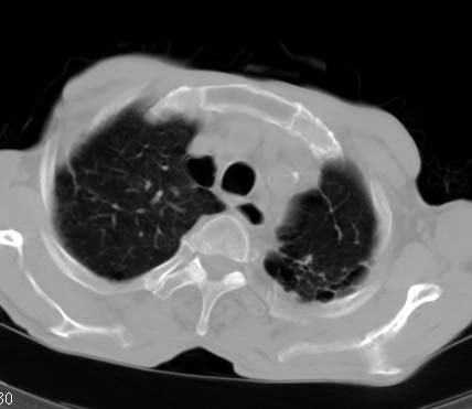 copd伴感染,肺大泡形成。
