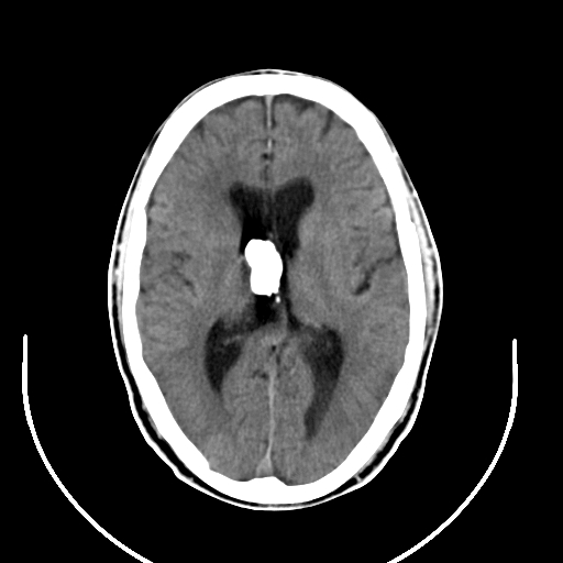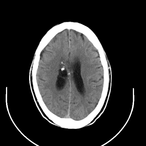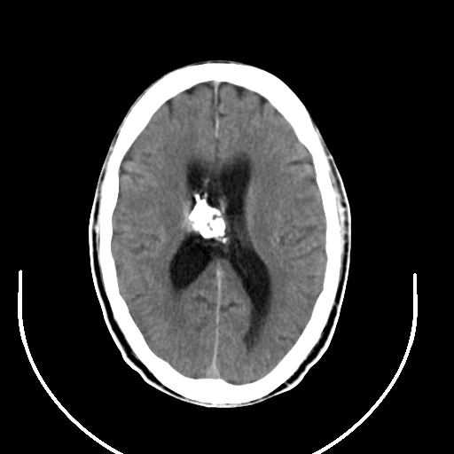 以下是引用拾荒者在2008-7-26 15:36:00的发言:[br]侧脑室内高密度钙化影,未见软组织结构,侧脑室未见增大,考虑良性钙化性改变(钙化型脑膜瘤可能)。