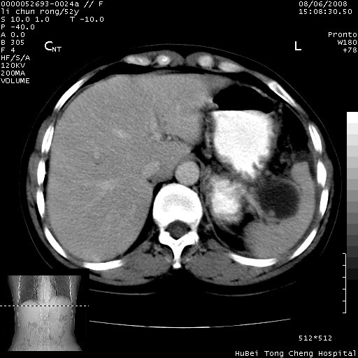 以下是引用zjzjr在2008-8-7 8:38:00的发言:[br]支持胰腺炎伴假囊肿形成,左肾小囊肿.少量腹水.