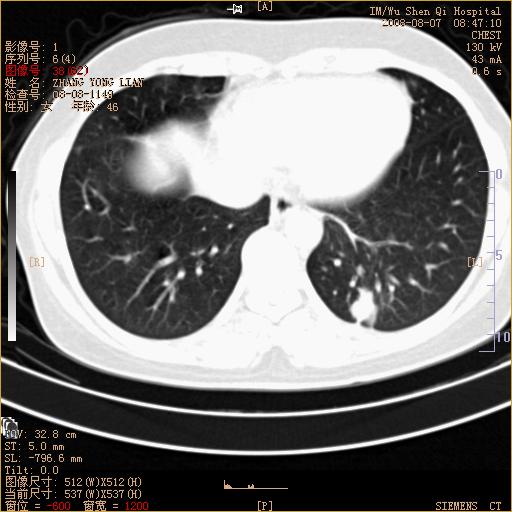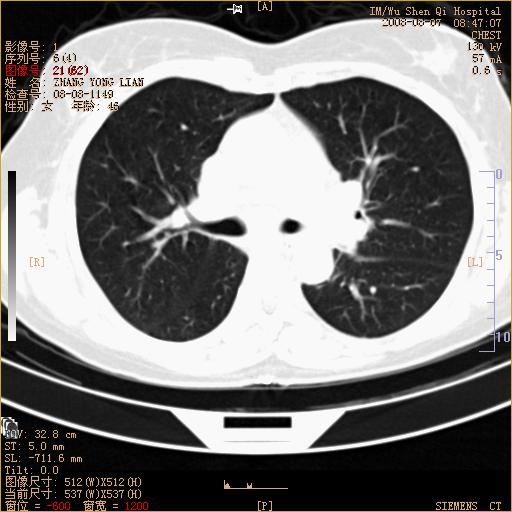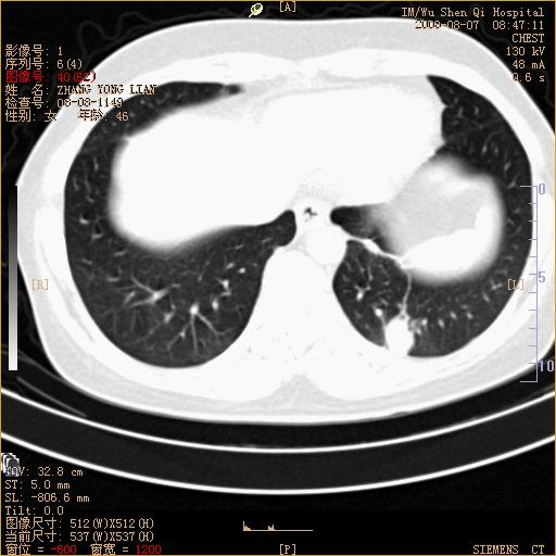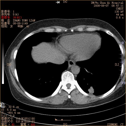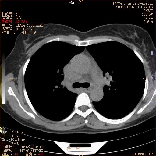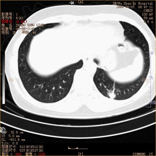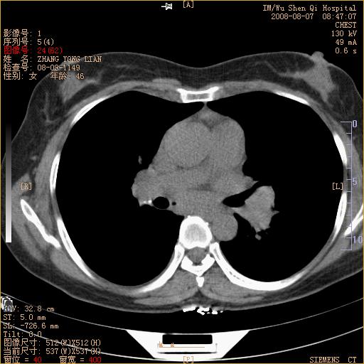 标题: 回复:ct15050:女,46岁,咳嗽胸痛一月余