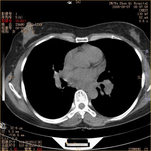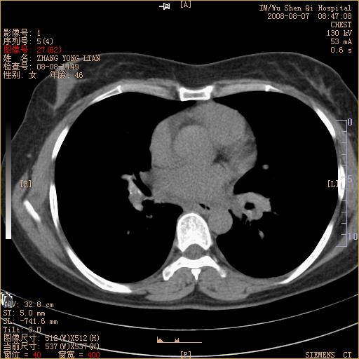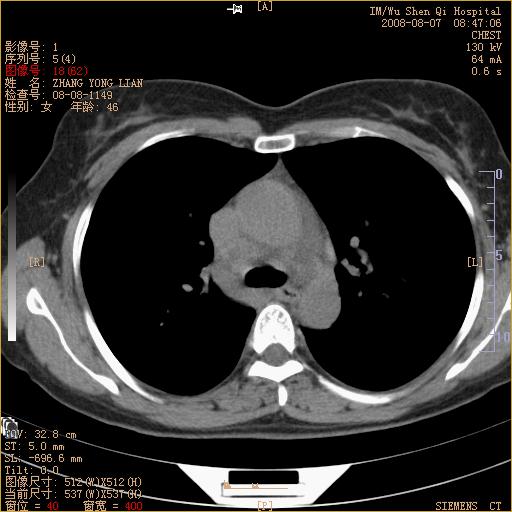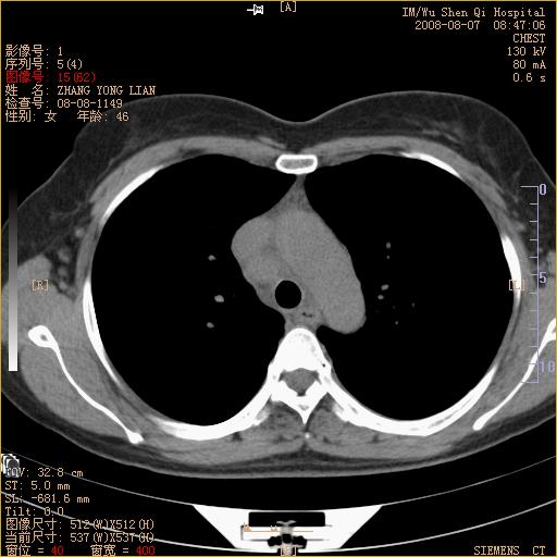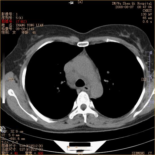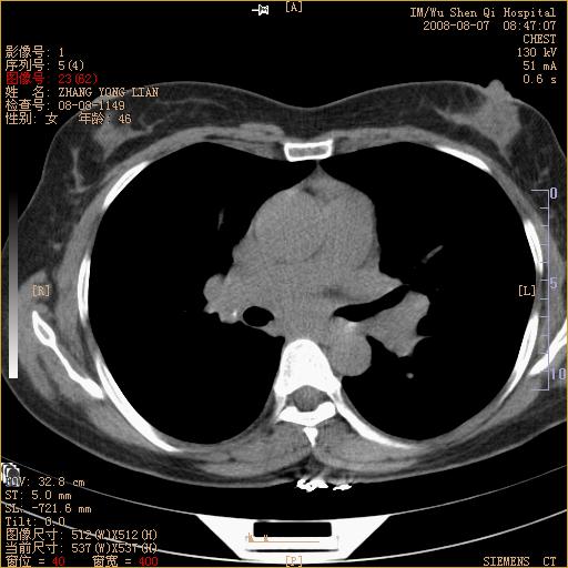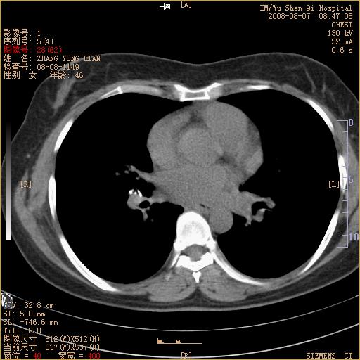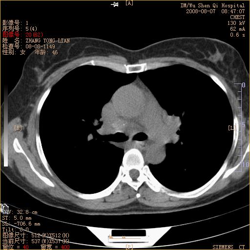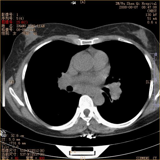 标题: CT15050:女,46岁,咳嗽胸痛一月余 [打印本页]