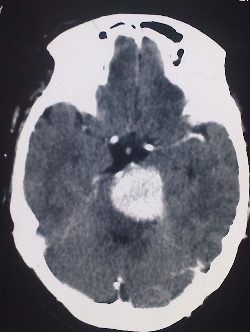 以下是引用liyf在2008-8-14 9:36:00的发言:[br]左岩骨尖区占位病变,平扫呈高密度,病变跨中后颅窝生长,岩骨可见骨质吸收,周围未见明显水肿,增强扫描病灶明显强化。考虑左岩骨尖区脑膜瘤。