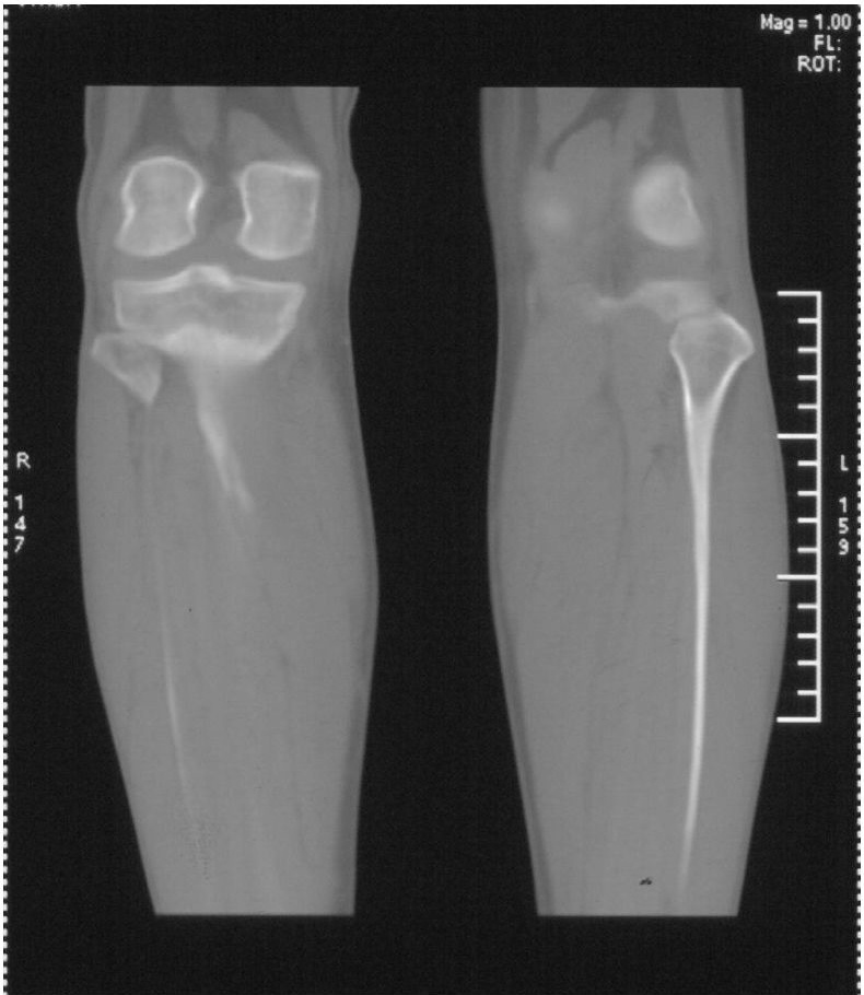 标题: CT15323:男,42岁。右侧小腿受伤4月余。(2104828)