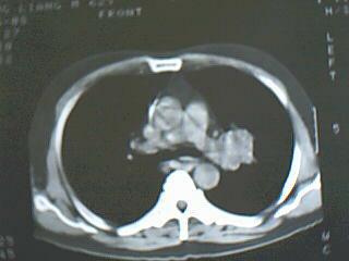 CT15371:男 62岁 间断性咳血两年余加重3天,偶尔有咳嗽,无