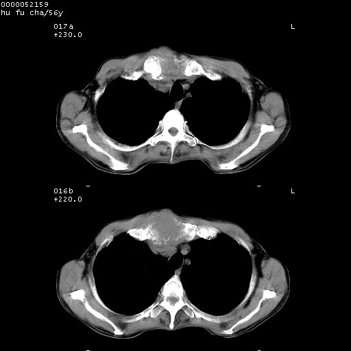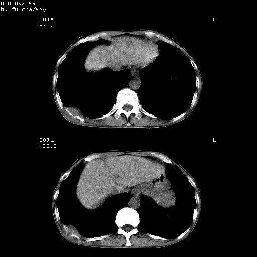 以下是引用zsl6918在2008-8-25 22:47:00的发言:[br]胸骨,胸椎及肋骨均可见多发转移表现,肝内低密度结节不除外转移。原发灶可能在右肺。双侧可见支扩表现。