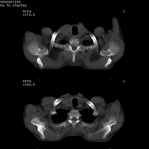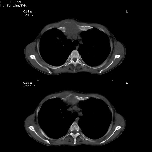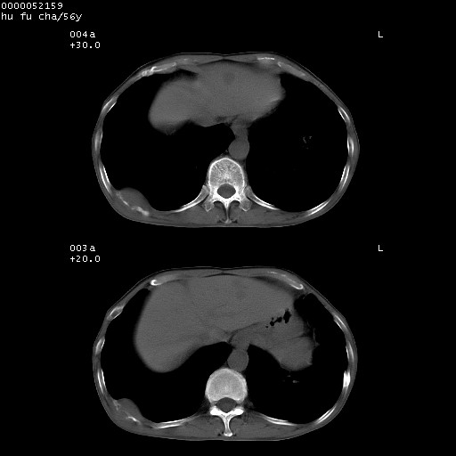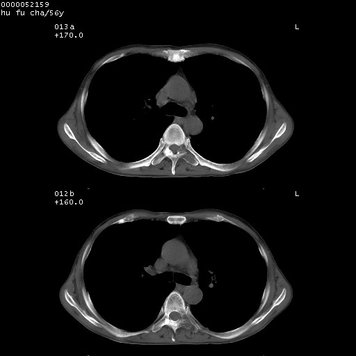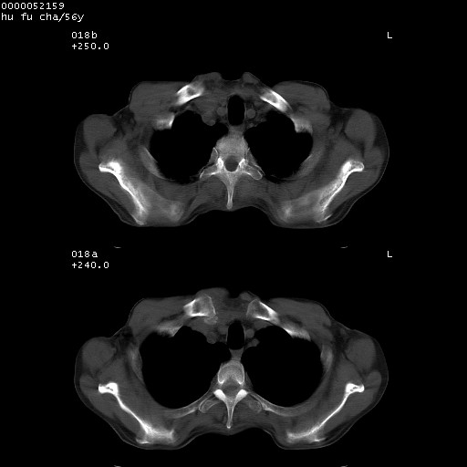 以下是引用宇宙ct在2008-8-25 23:26:00的发言:[br][br] 胸骨,胸椎及肋骨均可见多发转移表现,肝内低密度结节不除外转移。原发灶可能在右肺。双侧可见支扩表现。 [br] [br]