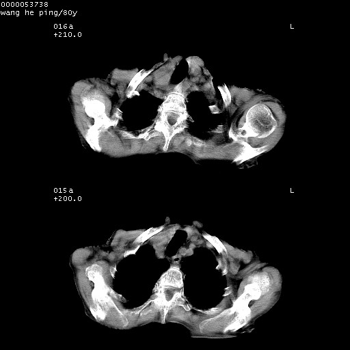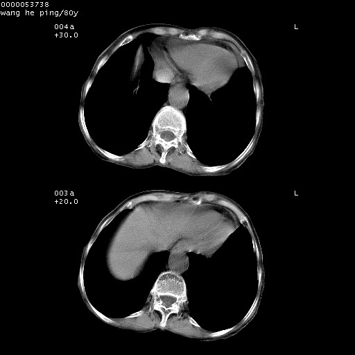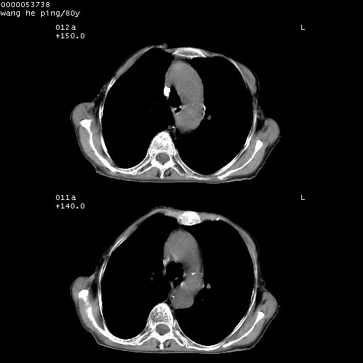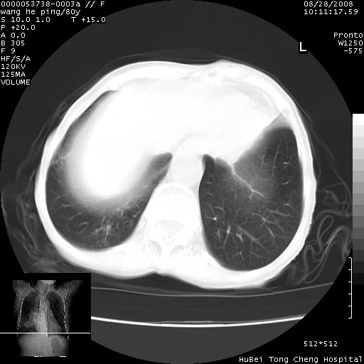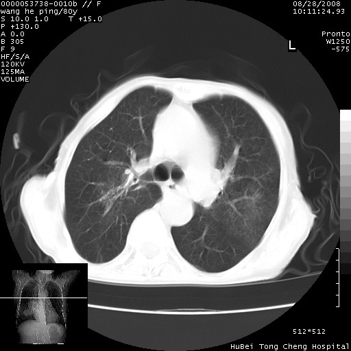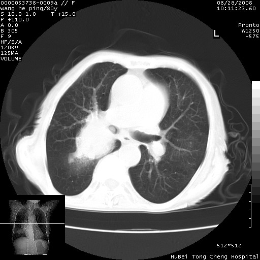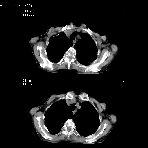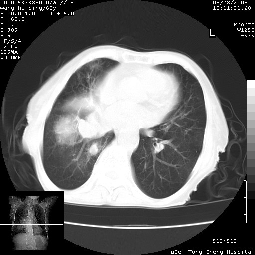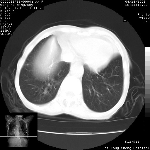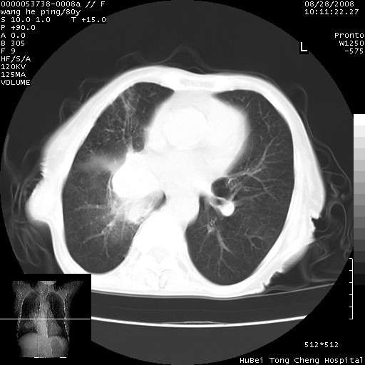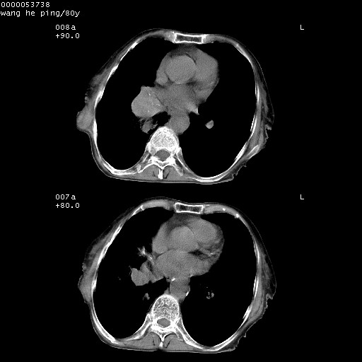 以下是引用liuyue在2008-8-28 22:46:00的发言:[br]1.右肺中心型肺癌伴阻塞性肺炎。[br]2.心包积液(少量)。
