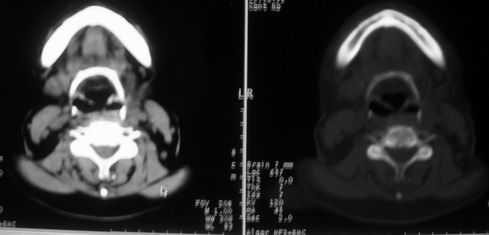 至于右侧颌下间隙的结节影,如果不考虑病史的话,可以诊断为淋巴结转移。但是结合病史“右侧颌下肿物3年”,又不象淋巴结转移了。建议ct增强扫描明确结节与右侧颌下腺的关系,或者穿刺活检定性。