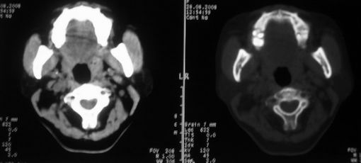 1)考虑右侧颌下腺恶性肿瘤并右侧颈部淋巴结转移。2)左侧上颌窦炎。