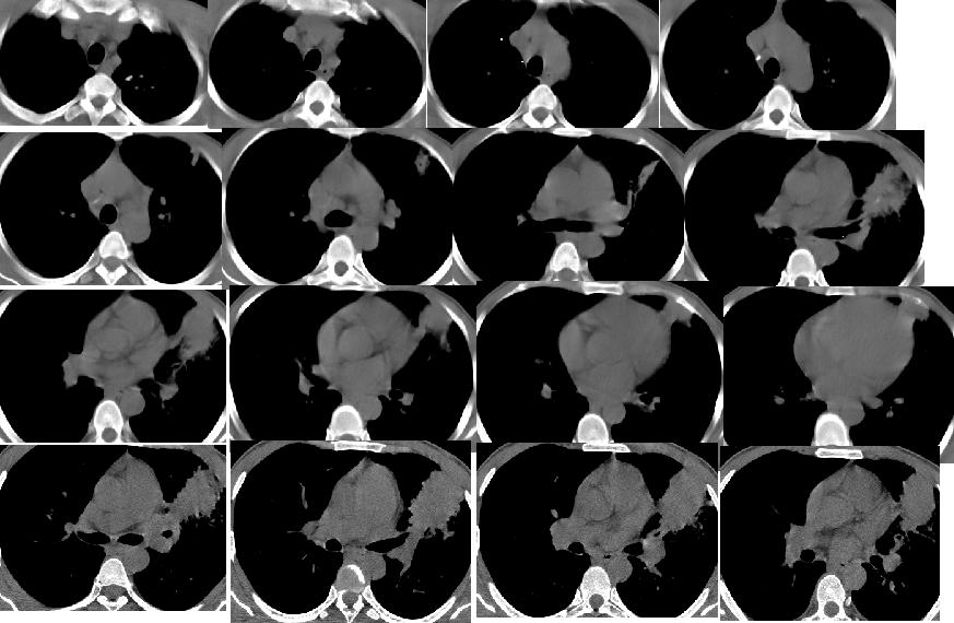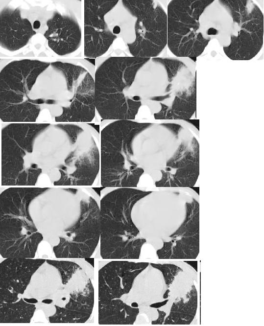 以下是引用随光逐影在2008-9-4 22:33:00的发言:[br]考虑左肺上叶舌段周围型肺癌并阻塞性肺炎,左肺门及纵隔淋巴结转移。