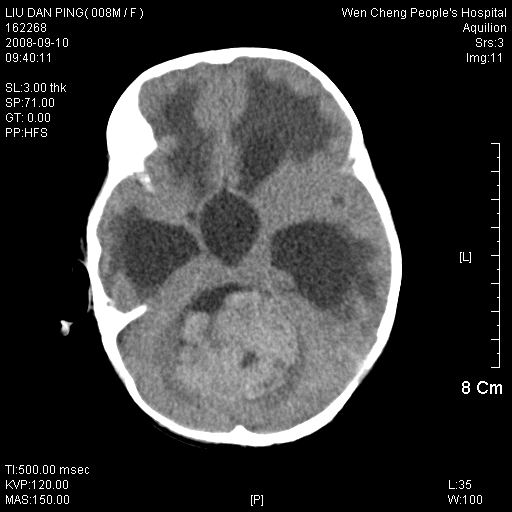 以下是引用zjzjr在2008-9-10 15:09:00的发言:[br]髓母细胞瘤伴梗阻性脑积水.
