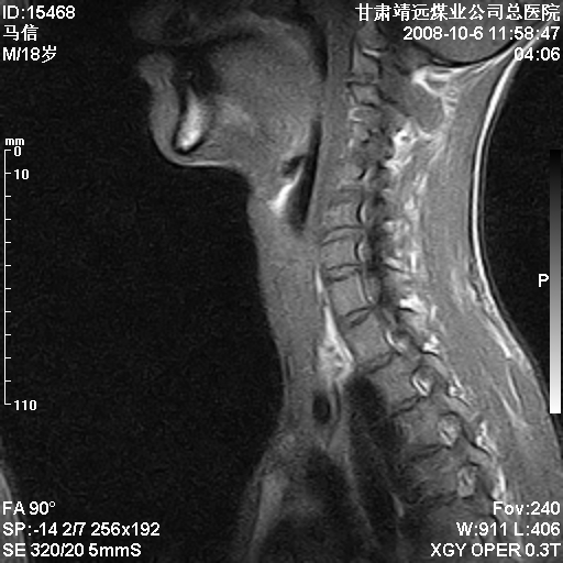 颈椎建议做增强扫描;腰椎诸椎终板骨骺炎。