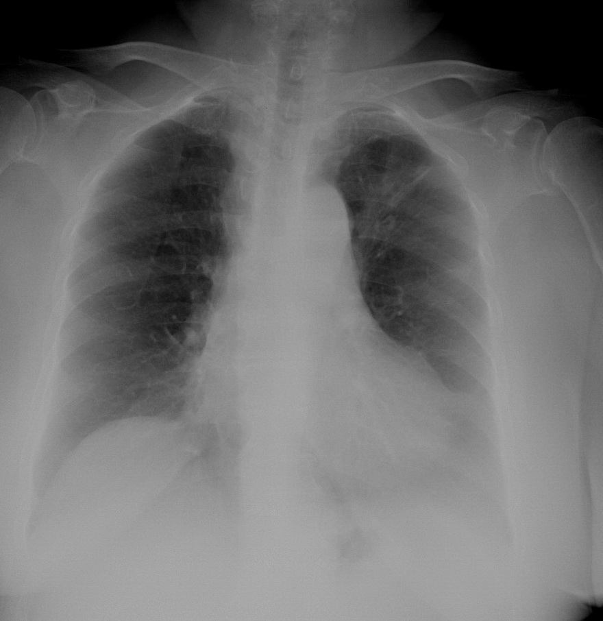 单从本片来看,没有异常,左侧肋膈角只是模糊一点,但还是可见。此人可能较胖,左右乳房影有可能不对称。
