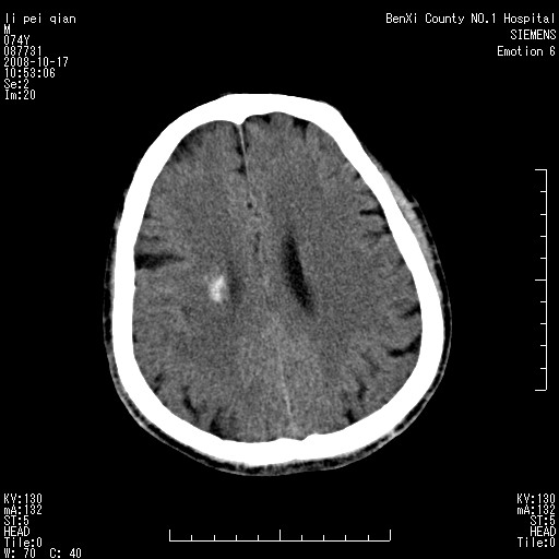 以下是引用影像孺子牛在2008-10-17 11:31:00的发言:[br]考虑:钙化。其一为病变密度特别高,其二如为出血其周围应有水肿带。