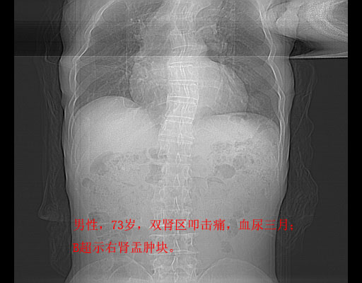右肾盂旁ca并肾静脉瘤栓形成/肾功能降低。