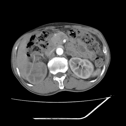 以下是引用余辉在2008-10-18 15:46:00的发言:[br]考虑右肾盂癌,肾动脉受侵,右肾功能减退,右肾盂输尿管积水,管壁增厚,考虑种植转移,应该把下面扫完的