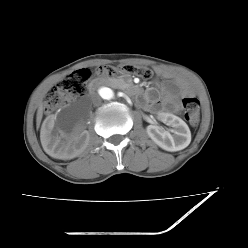右肾盂癌,肾动脉受侵,右肾盂输尿管积水,管壁增厚,考虑种植转移