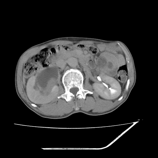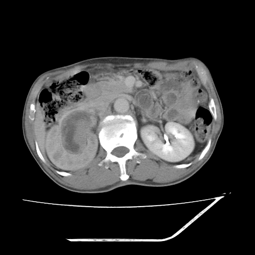 2.肾脏功能减退,原因有:(1)肾动脉受侵。(2)肾静脉受侵(3)肾积水,等。本例,肾动脉显影较好,但受压明显;肾静脉无明显显示,受压或静脉癌栓,下腔静脉腔内未见明显充盈缺损。