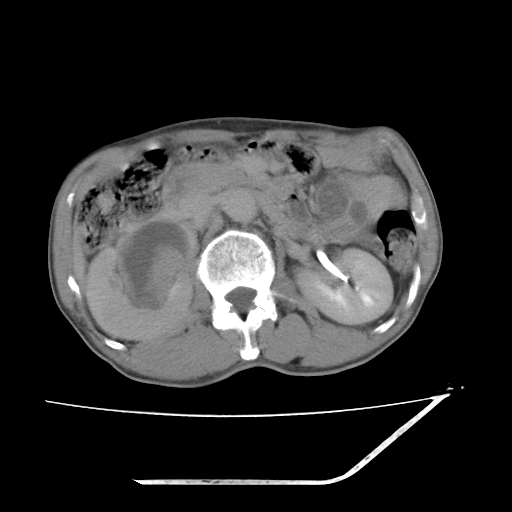 右肾盂移行细胞癌并右输尿管中段转移.肾积水.