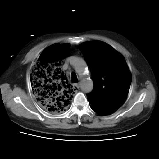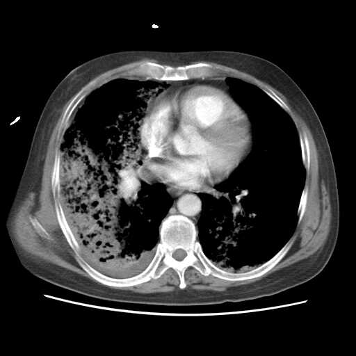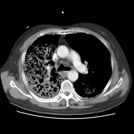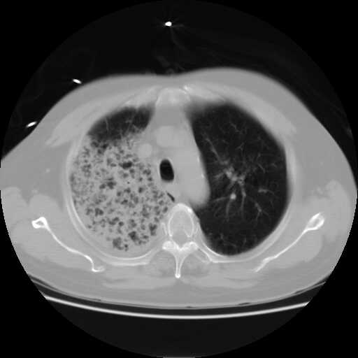 我曾看过一例类似病例-----痰培养-----克雷白杆菌肺炎-----大片阴影内见多发筛孔征