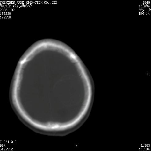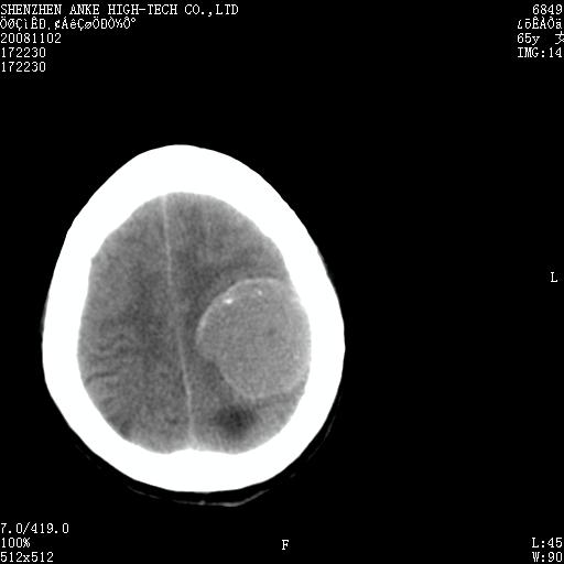 1)左侧顶区脑膜瘤可能性大;建议必要时行进一步检查。2)左侧脑室积水。