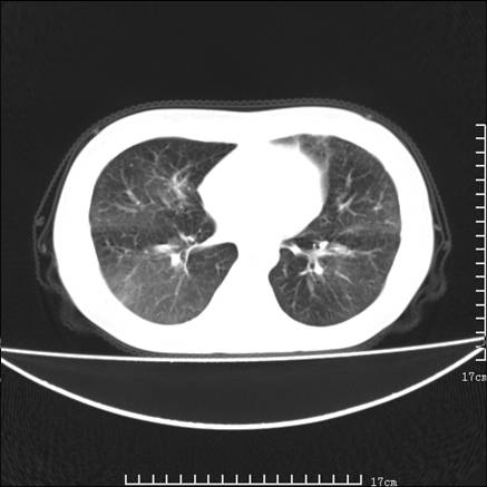 正如caihe主任所言,影像表现结合临床病史应该支持肺癌性淋巴管炎;上肺大片边缘不清的渗出病变,多系感染所致,临床有感冒病史并咳嗽表现。肺癌性淋巴管炎临床一般无咳嗽、咳痰症状。