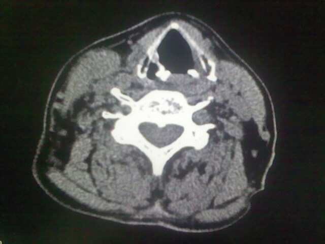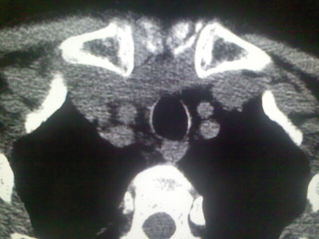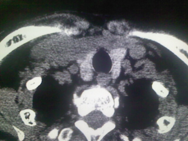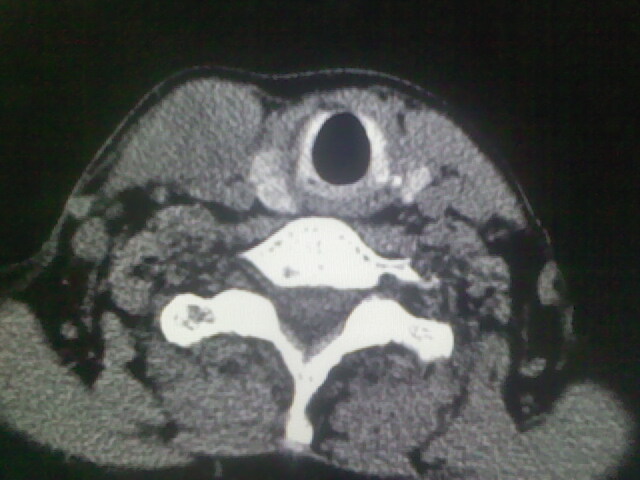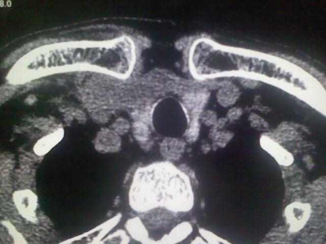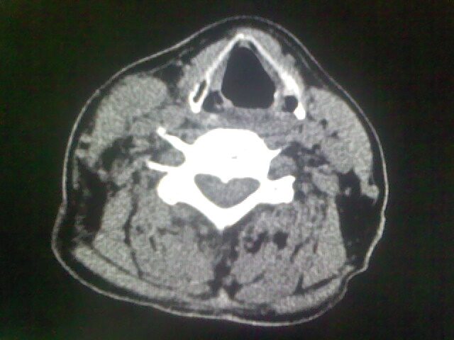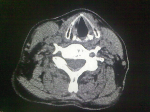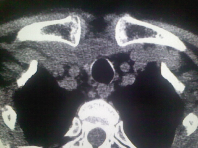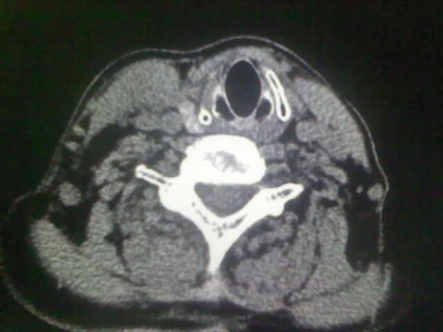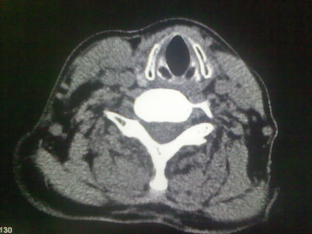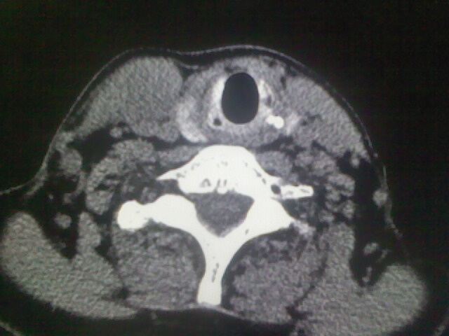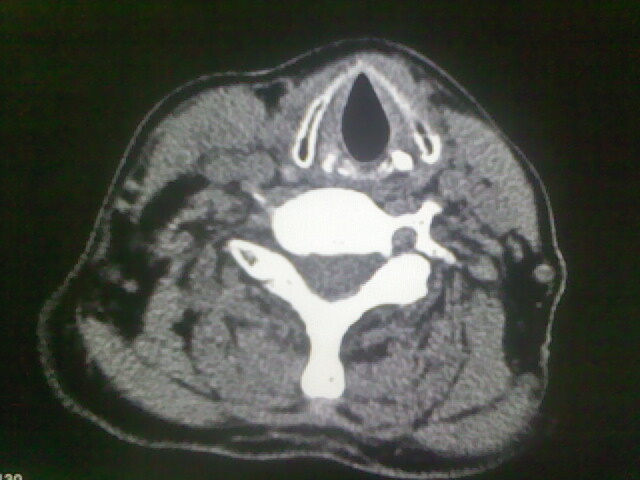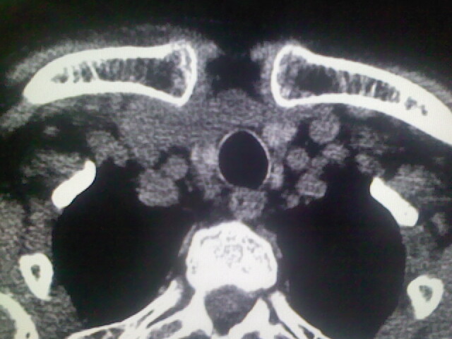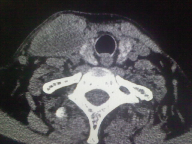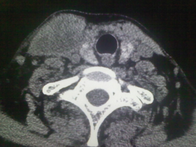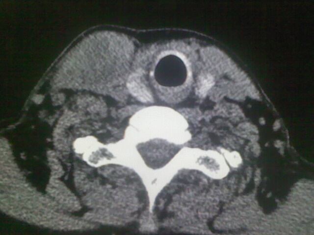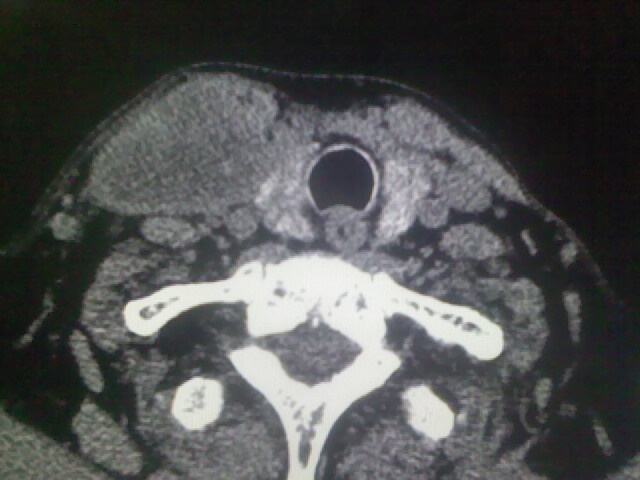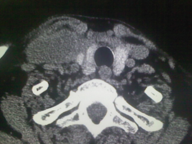 CT16533:女,62岁,右颈部可见一包块,未觉疼痛,大家给看看