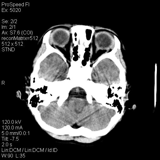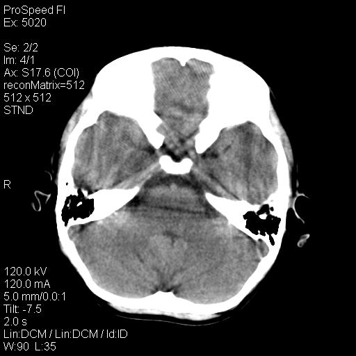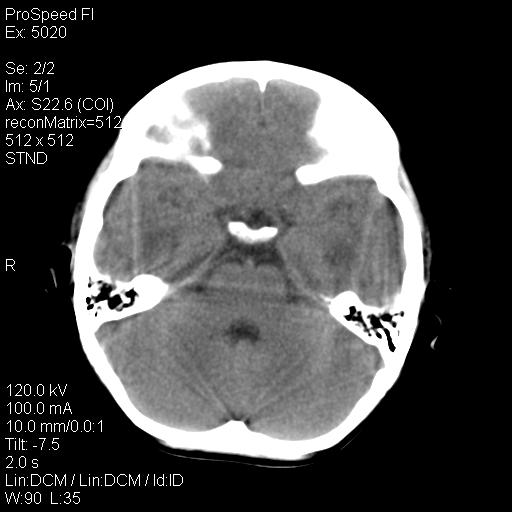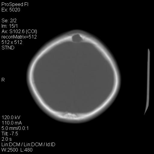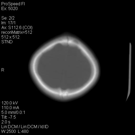 2、颅骨皮样囊肿,皮样囊肿内为脂肪密度ct值多为负值,常在-15~10hu之间。