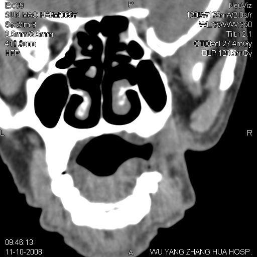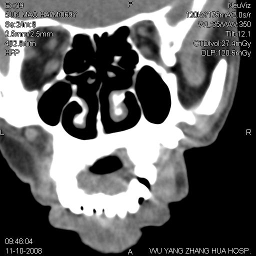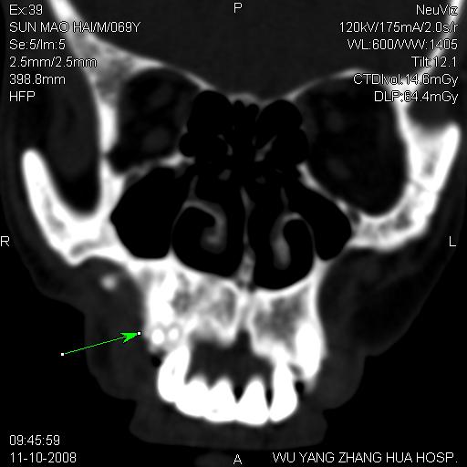 考虑右上颌异位齿(或斜向阻生齿)并根尖脓肿。