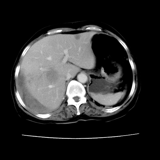 考虑肝癌破裂出血并包膜下血肿,建议复查增强吧。