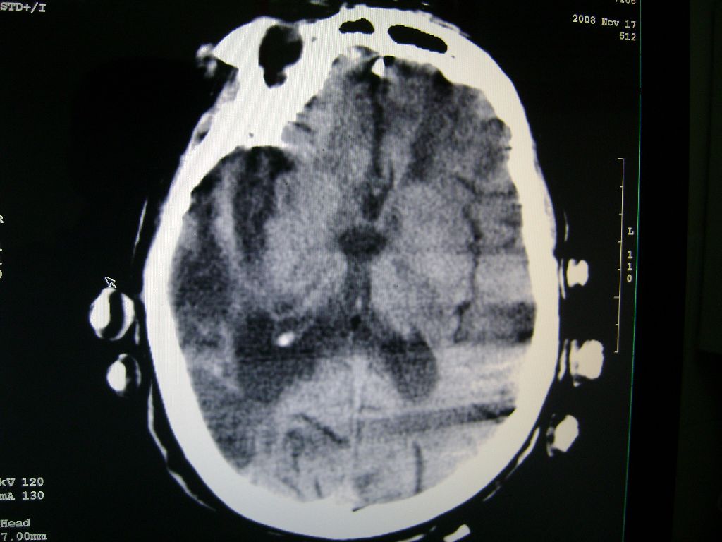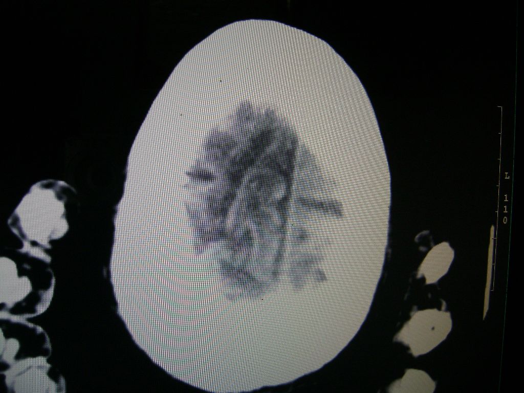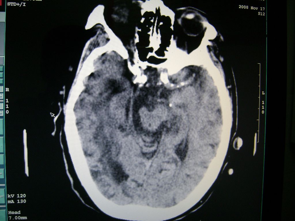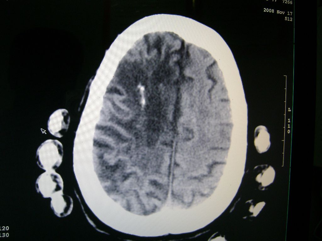 以下是引用深泽交通医院在2008-11-18 9:36:00的发言:[br]右脑软化灶,考虑再次梗塞,高密度灶出血?钙化?。。。量ct值,改窗宽,位