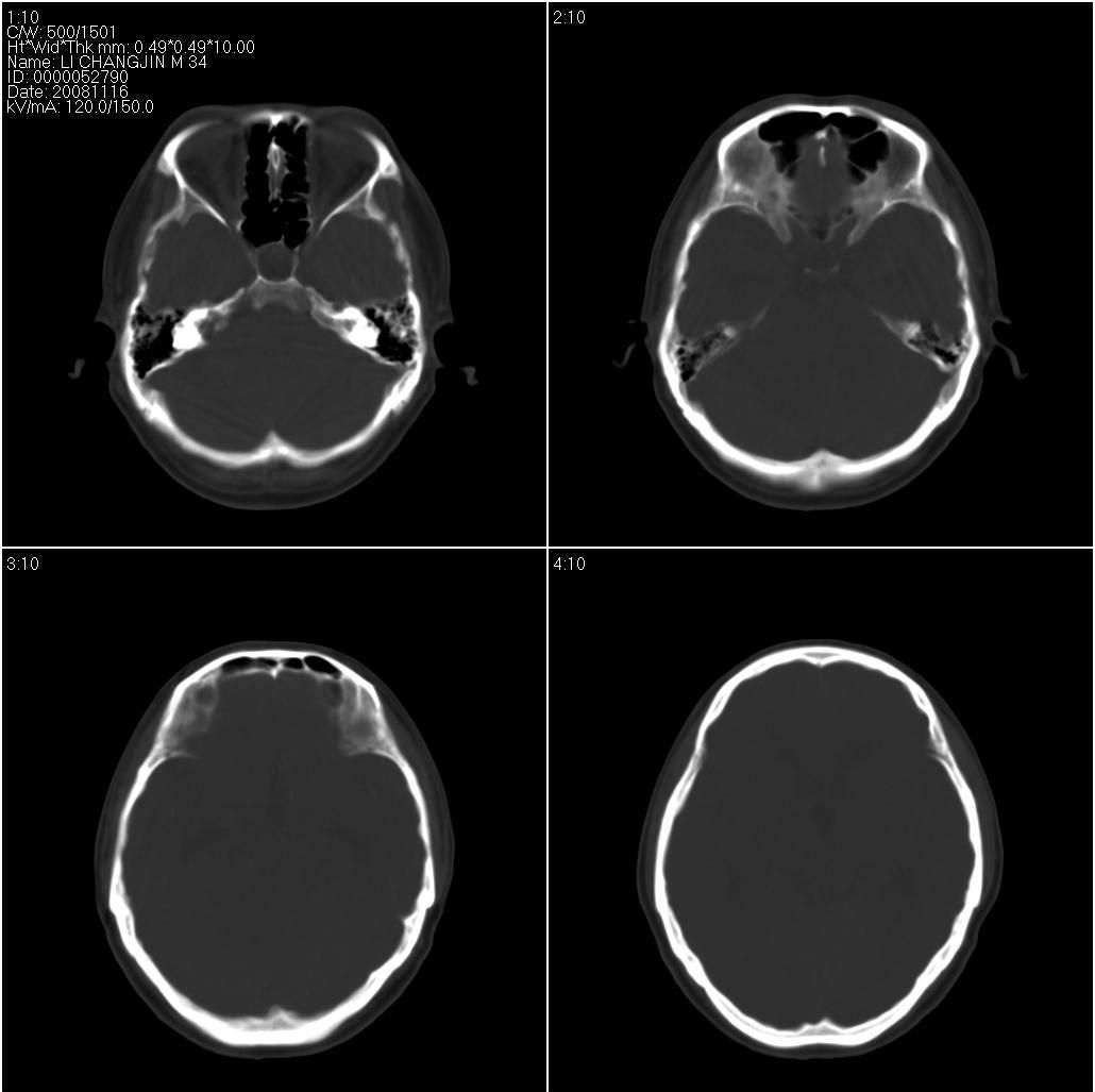 看到骨窗了,右侧内听道扩大(再往下扫一层),支持听神经瘤