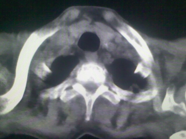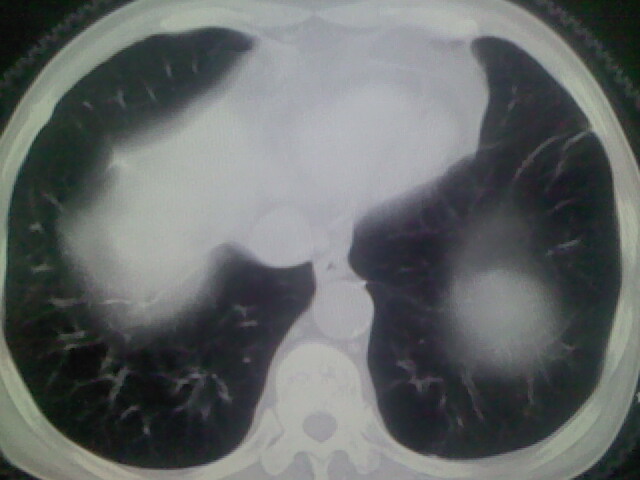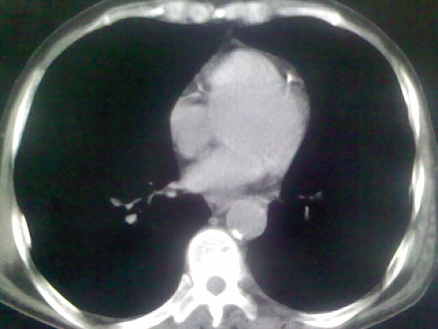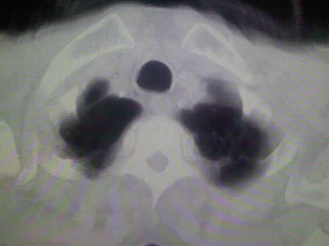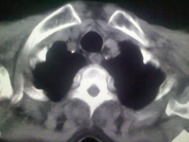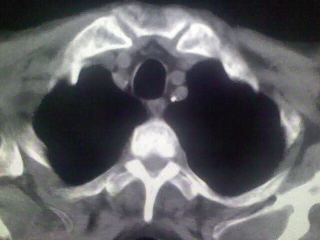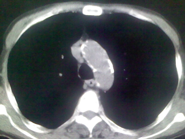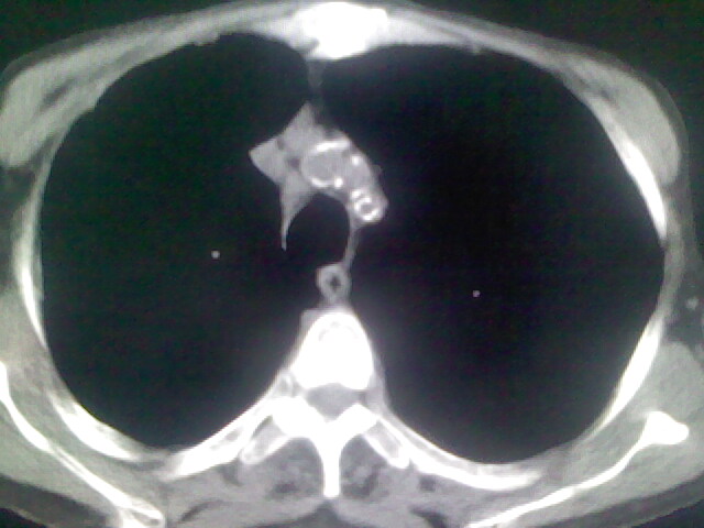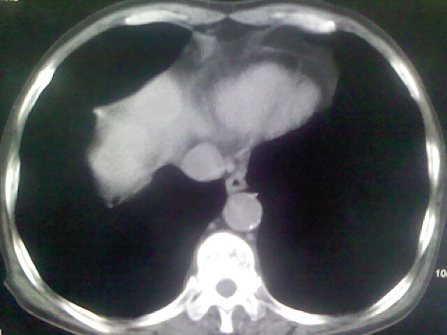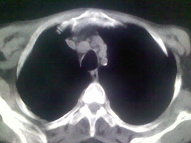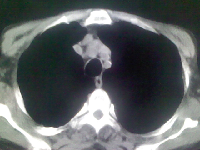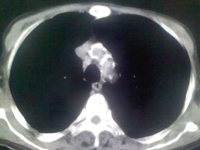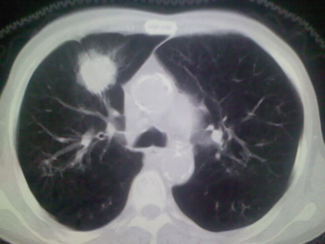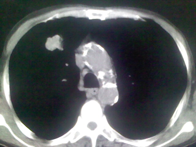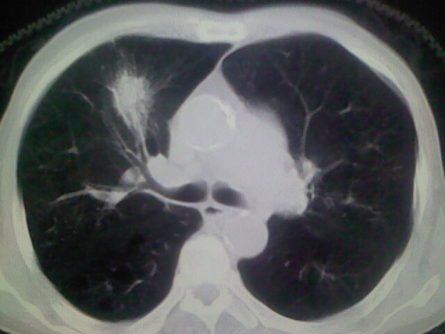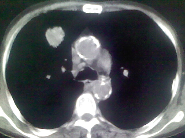 以下是引用卜一在2008-11-19 15:44:00的发言:[br][br] [br] 1)考虑右肺上叶周围型肺癌并纵隔及右颈部淋巴结转移,肝脏多发性转移。2)肺气肿。3)冠状动脉及主动脉钙化。支持!另:胃内病变不好确定,建议行胃镜! [br] [br]