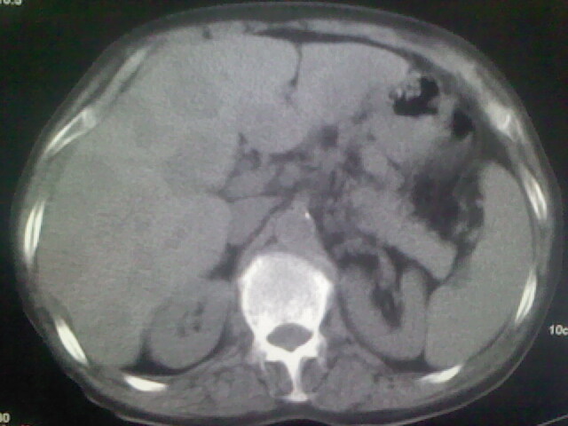 以下是引用yxrcpa在2008-11-19 15:55:00的发言:[br]1、右肺上叶周围型肺癌并纵隔、颈部淋巴结转移,肝多发转移灶。[br]2、胃充盈欠佳,不能确定。