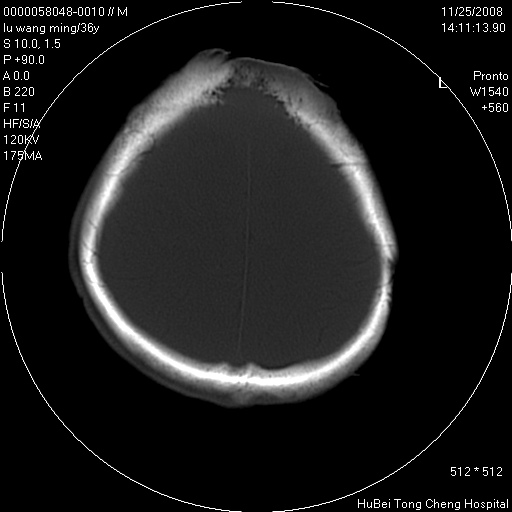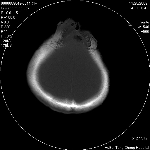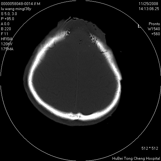 标题: CT16803:M,36Y。头部烧伤36年伴溃烂,经久不愈。
