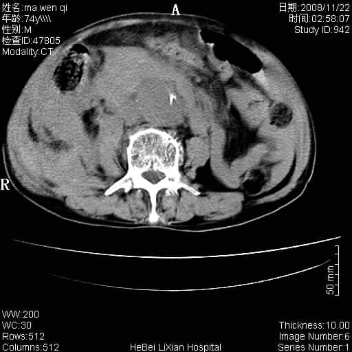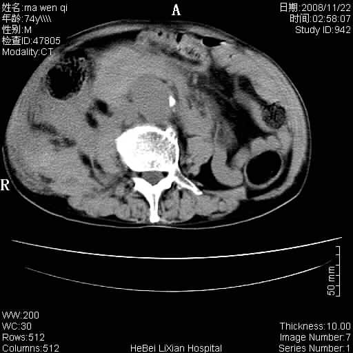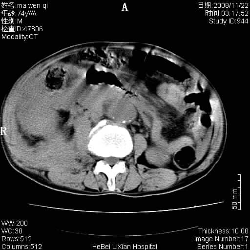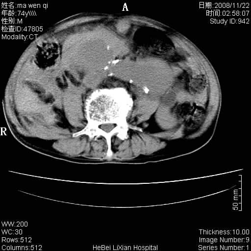 以下是引用jiangjing在2008-11-27 10:56:00的发言:[br]腹主动脉、双侧髂动脉夹层或动脉瘤破裂出血进入腹腔
