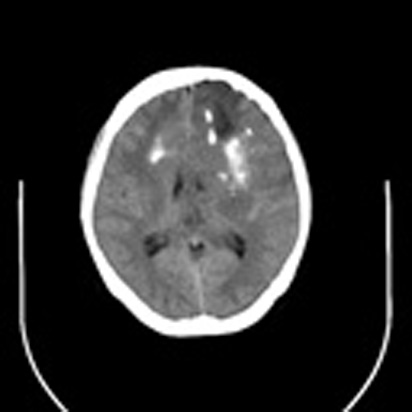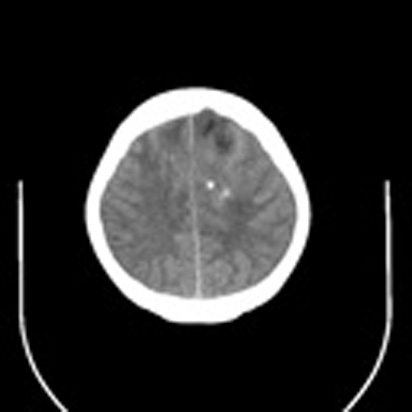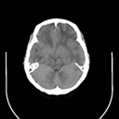 近20天偶有口眼歪斜短暂发作史,近日头痛。患者先做ct发现病变后又做了mri检查,前日上传2次ct图像均未成功,今日补上。