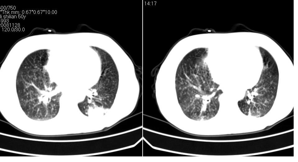 建议:结合临床资料,或穿刺活检,除外继发性肺结核之可能。