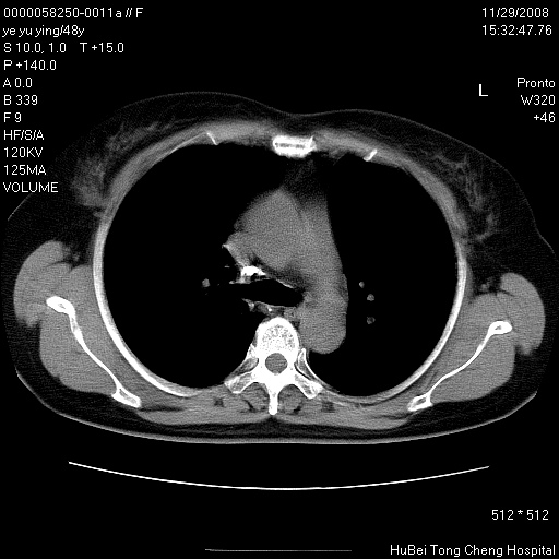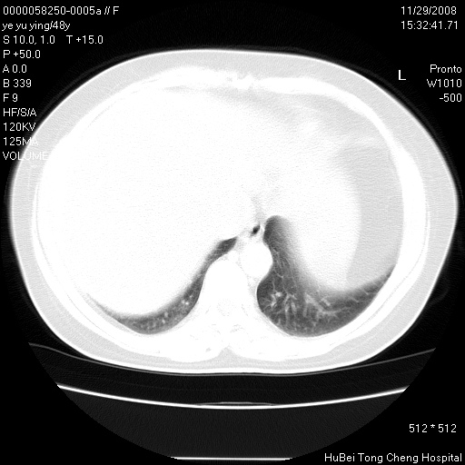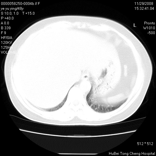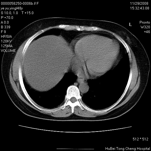 以下是引用liuyue在2008-11-30 5:44:00的发言:[br]1.左肺病变,首先考虑感染性病变,转移待排;建议治疗后复查。[br]2.肝脏密度普遍减低,考虑与化疗有关。[br]3.胆囊结石.