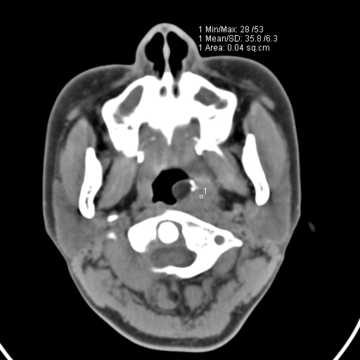 以下是引用zjzjr在2008-12-5 11:46:00的发言:[br]脂肪密度,壁有钙化.考虑口咽部皮样囊肿可能性大.双侧上颌窦炎,双侧下鼻甲粘膜肥厚.增殖腺肥大,扁桃体亦增大,考虑炎性.