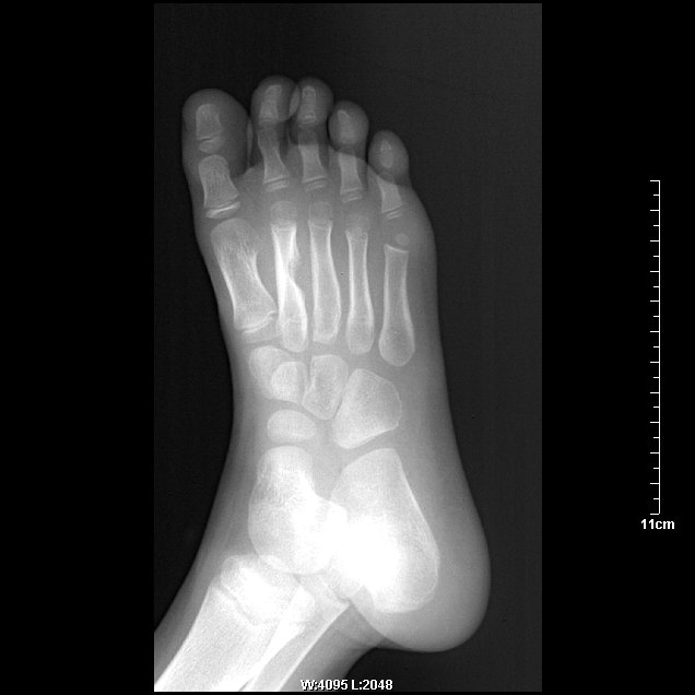 女 5岁 足底部(三、四跖骨处)针刺二月余,现局部红肿。