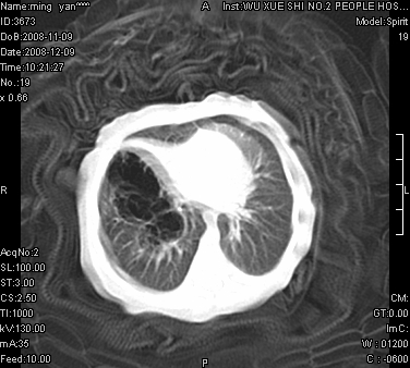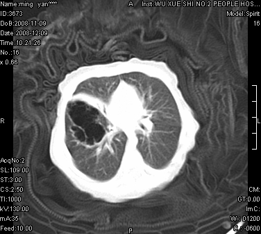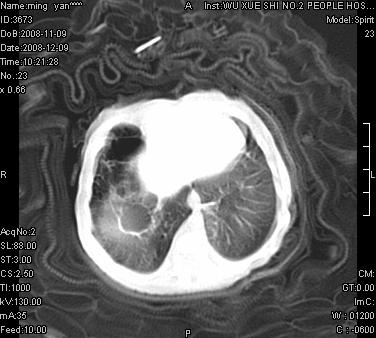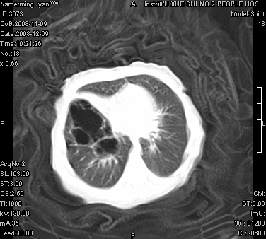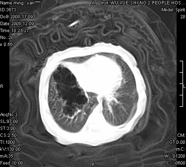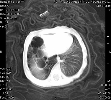 以下是引用jiangjing在2008-12-10 13:32:00的发言:[br]考虑右肺下叶肺囊肿伴感染,右中叶节段实变或发育不全
