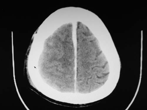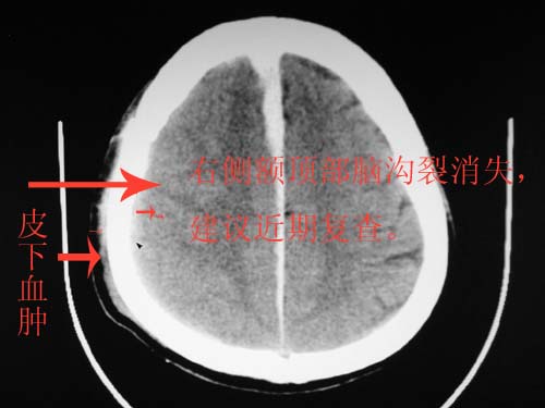 支持镰旁硬膜下血肿,颅骨骨折,头皮损伤