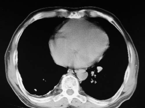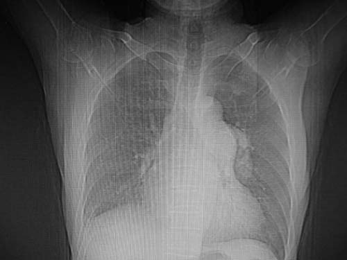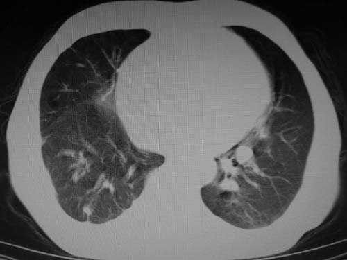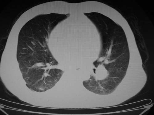 结合患者年龄,不除外左下肺扩张性动脉瘤,建议胸透是否有扩张性博动,以便确诊。