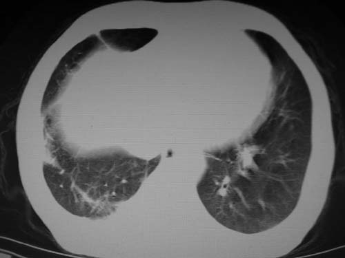 以下是引用随光逐影在2008-12-14 15:10:00的发言:[br]1)考虑肺动脉狭窄。2)右肺上叶继发性肺结核。3)右侧胸膜增厚、钙化,左侧胸膜反应。