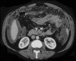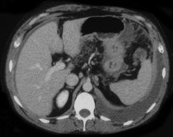 以下是引用随光逐影在2008-12-19 8:33:00的发言:[br]1)右侧腹腔前部见类似“网膜饼”样改变,考虑网膜转移瘤。2)腹水。