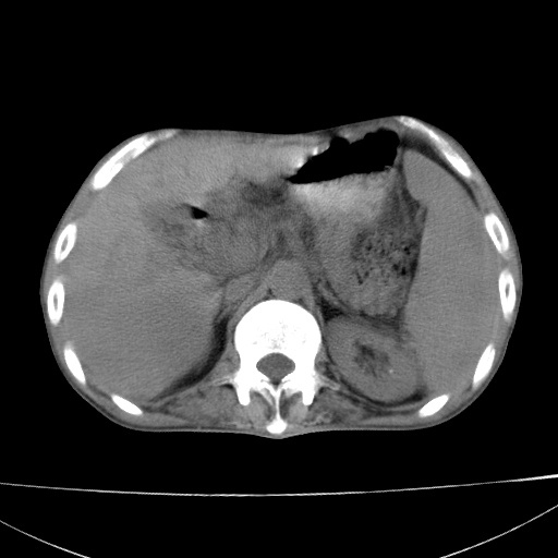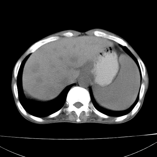 以下是引用zjzjr在2008-12-19 13:01:00的发言:[br]肝硬化\\脾大\\门静脉高压,胃底静脉曲张可能性大.肝右叶肝癌肝内转移,建议增强.左侧小结石.