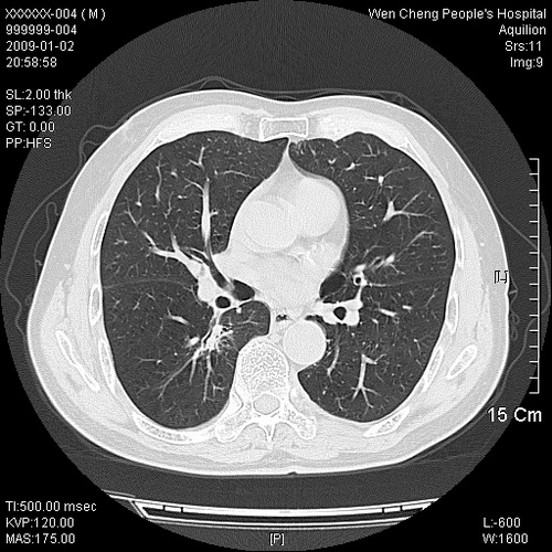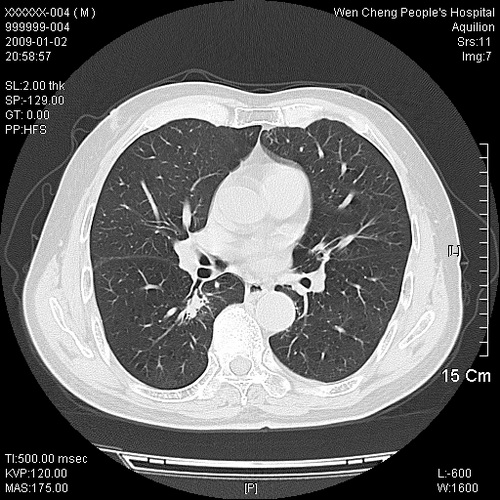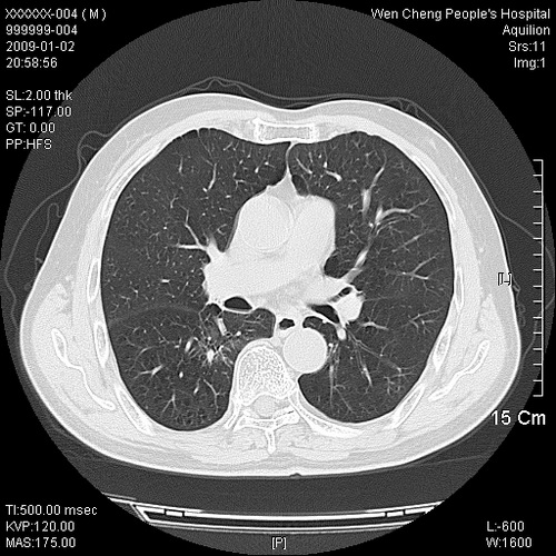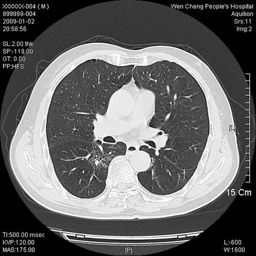 标题: 回复:ct17495:男性,73岁,有慢支病史,体检病例