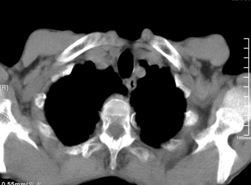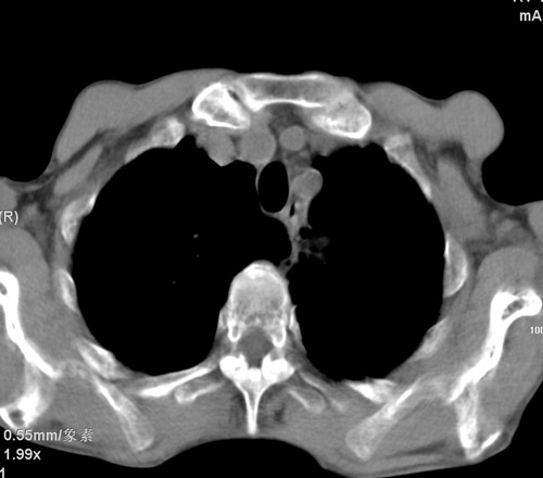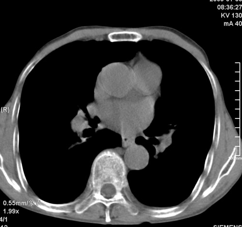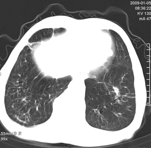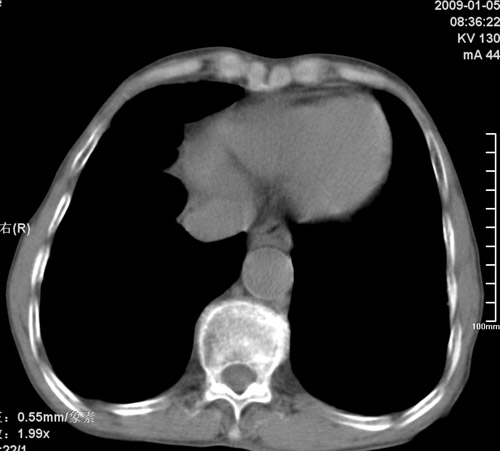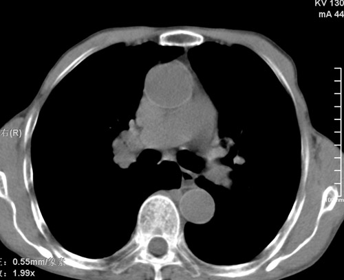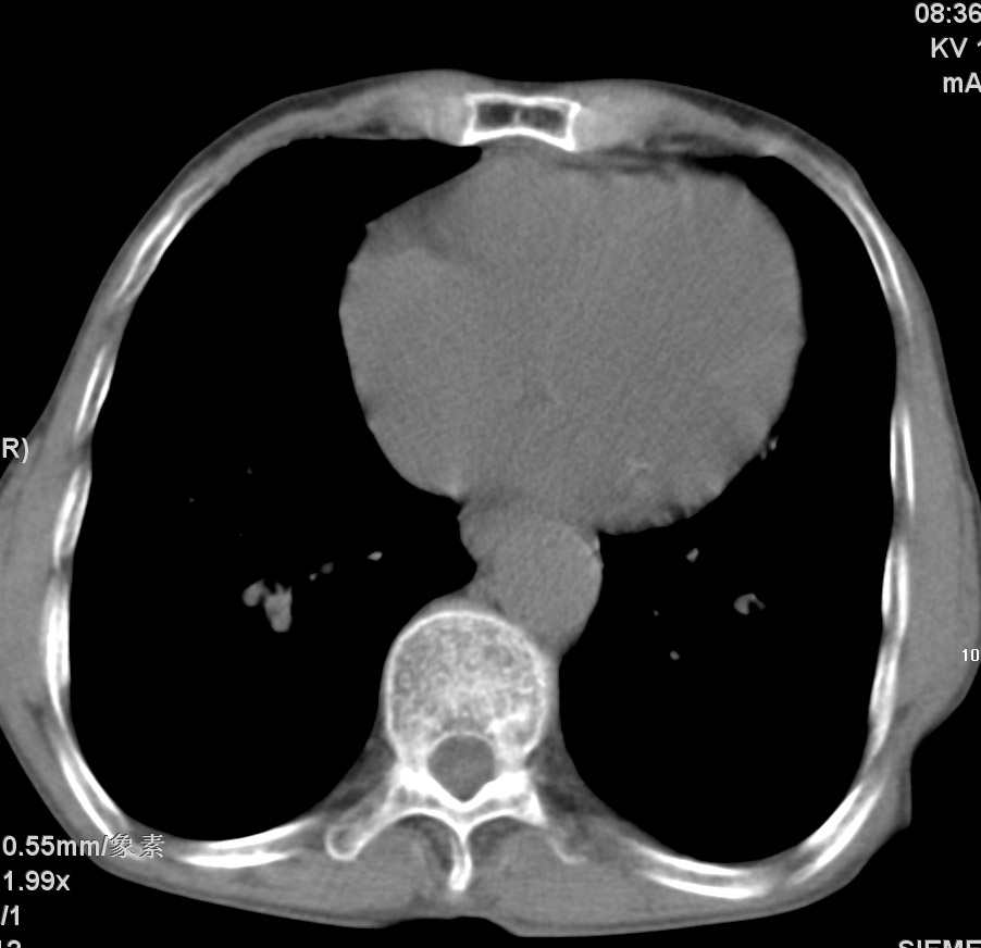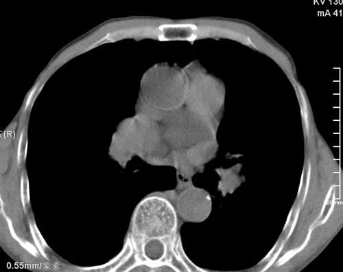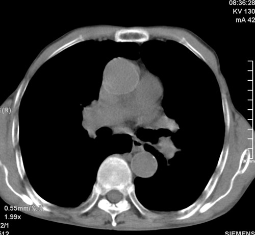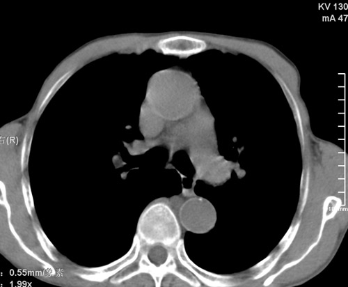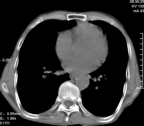 CT17529:男 76 胸背部不适半月 胸透支气管炎 行CT检查